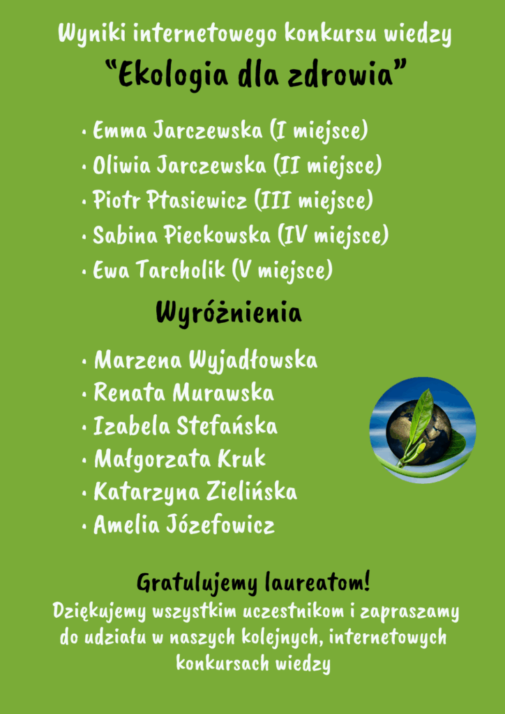 Rozstrzygnięcie konkursu „Ekologia dla zdrowia”