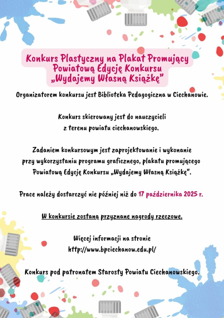 NA PLAKAT PROMUJĄCY POWIATOWĄ EDYCJĘ KONKURSU „WYDAJEMY WŁASNĄ KSIĄŻKĘ„
