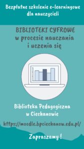 Biblioteka Pedagogiczna w Ciechanowie zaprasza wszystkich nauczycieli oraz studentów do skorzystania z platformy e-learningowej Moodle.