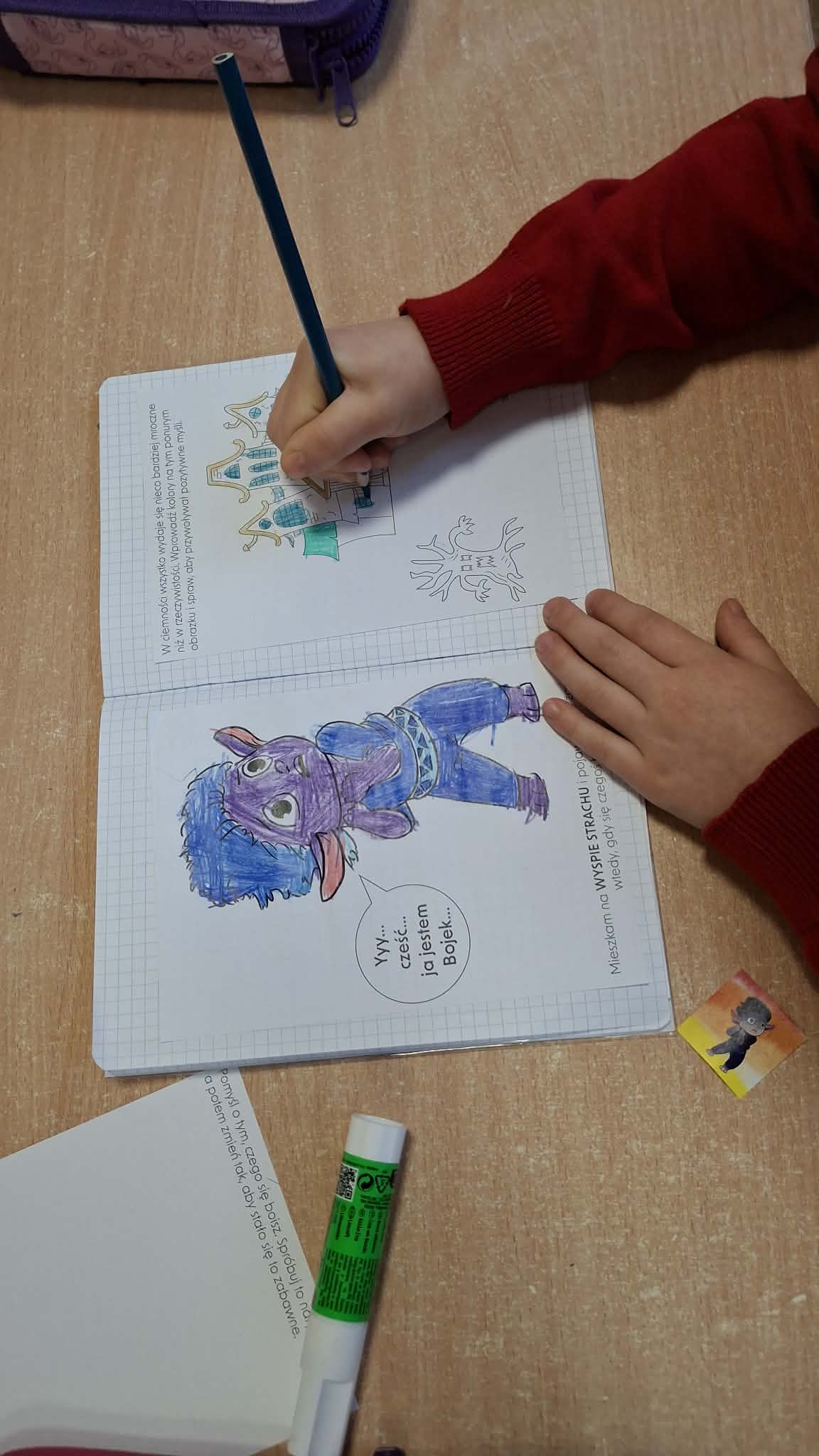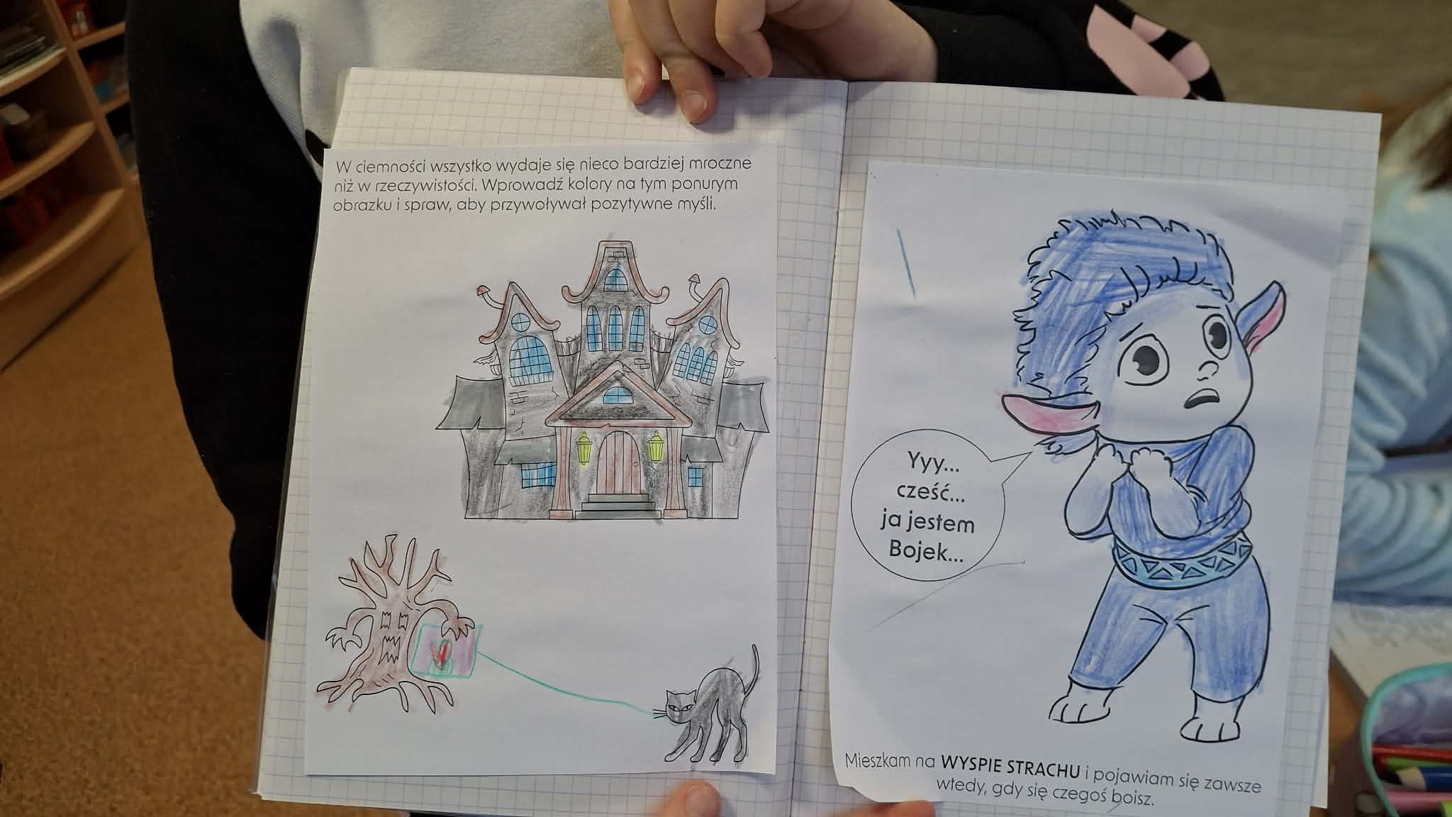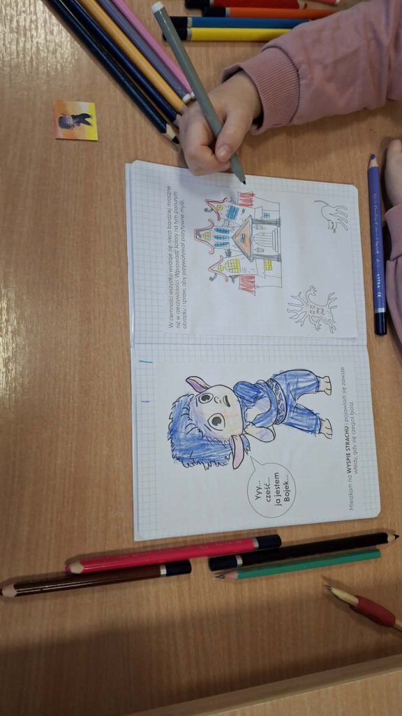Tym razem dzieci poznały Bojka z Wyspy Strachu, bohatera pomagającego zrozumieć i oswoić emocję lęku. Podczas zajęć przedszkolaki wysłuchały bajki „Bojek z Wyspy Strachu” autorstwa Moniki Majewskiej, która stała się punktem wyjścia do rozmów o tym, czym jest strach i jak można sobie z nim radzić.