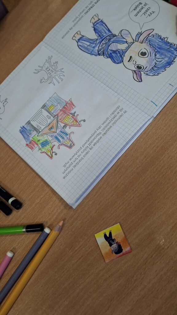 Uczestnicy wspólnie stworzyli bank pomysłów na sposoby radzenia sobie ze strachem, wzięli udział w teatrzyku cieni, a także wykonali zadanie „Czego się boję?”, uzupełniając swoją książeczkę emocjonalną. Zajęcia przebiegły w przyjaznej atmosferze, sprzyjającej otwartemu wyrażaniu emocji i wzmacnianiu poczucia bezpieczeństwa dzieci.