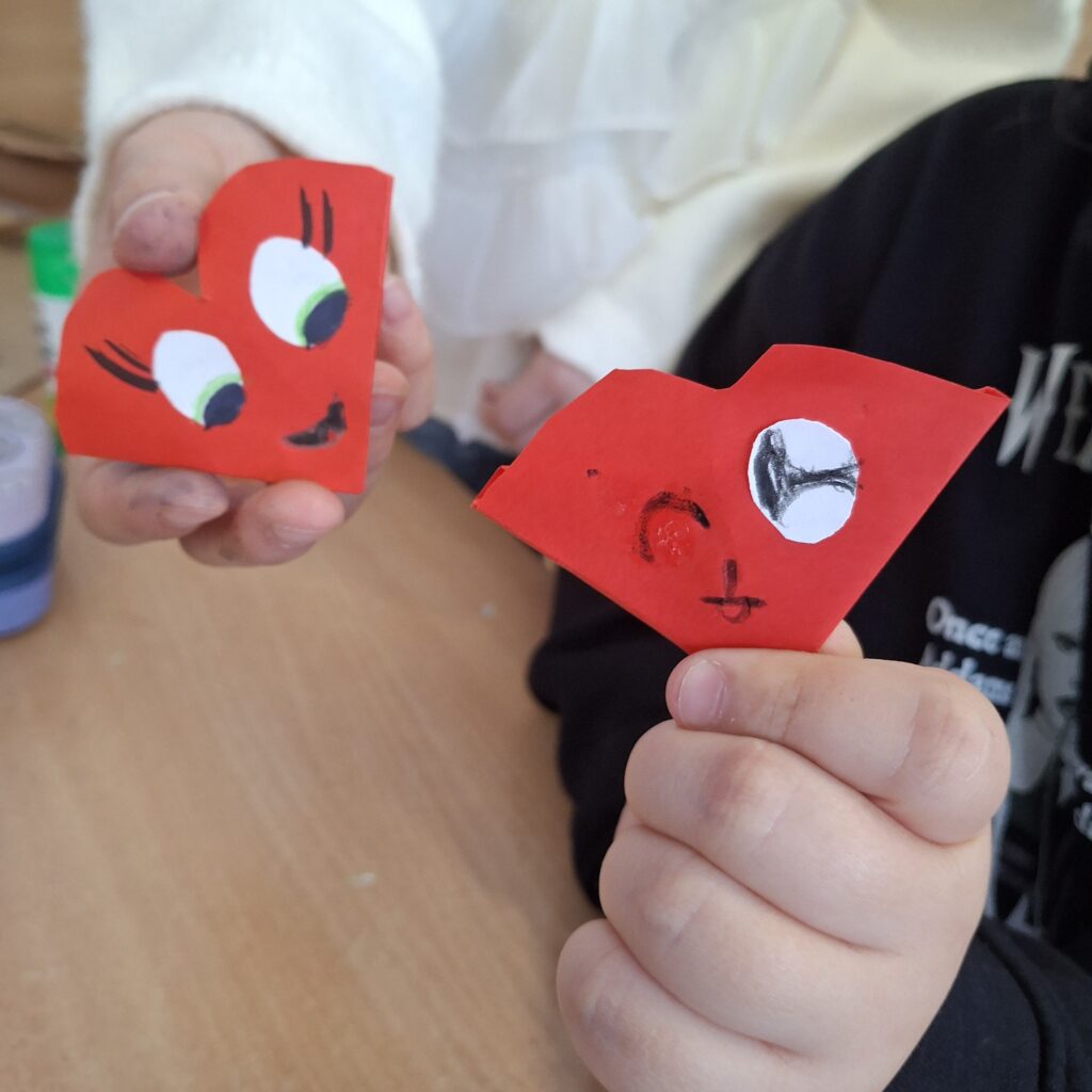 Nie zabrakło także rozmów o tym, jak dbać o serce na co dzień, a zdobytą wiedzę utrwalaliśmy poprzez quizy na platformie Wordwall. Każde dziecko wykonało również własną zakładkę w kształcie serca, która będzie przypominać o wartości czytania i dbania o zdrowie.