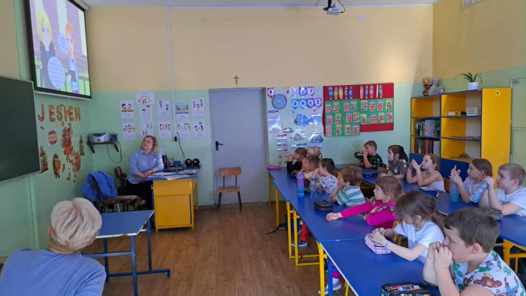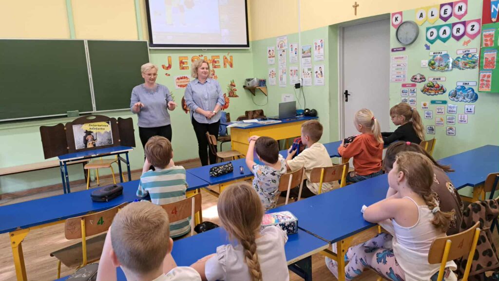 Na wstępie uczniowie wysłuchali bardzo ciekawej opowieści pt. „Internetowa koleżanka” przedstawionej w formie teatrzyku Kamishibai. Następnie poznali drużynę Sieciaków, która udzieliła im rad na temat bezpieczeństwa w sieci. Podczas zajęć rozmawialiśmy o tym, jak chronić się przed zagrożeniami w Internecie, o świadomości treści tam publikowanych oraz o zasadach Netykiety. Podsumowaniem tej dyskusji był wspólnie przygotowany plakat. Na zakończenie uczniowie rozwiązali tematyczne quizy na platformie LearningApss.