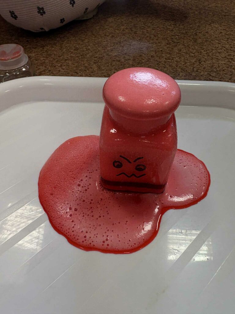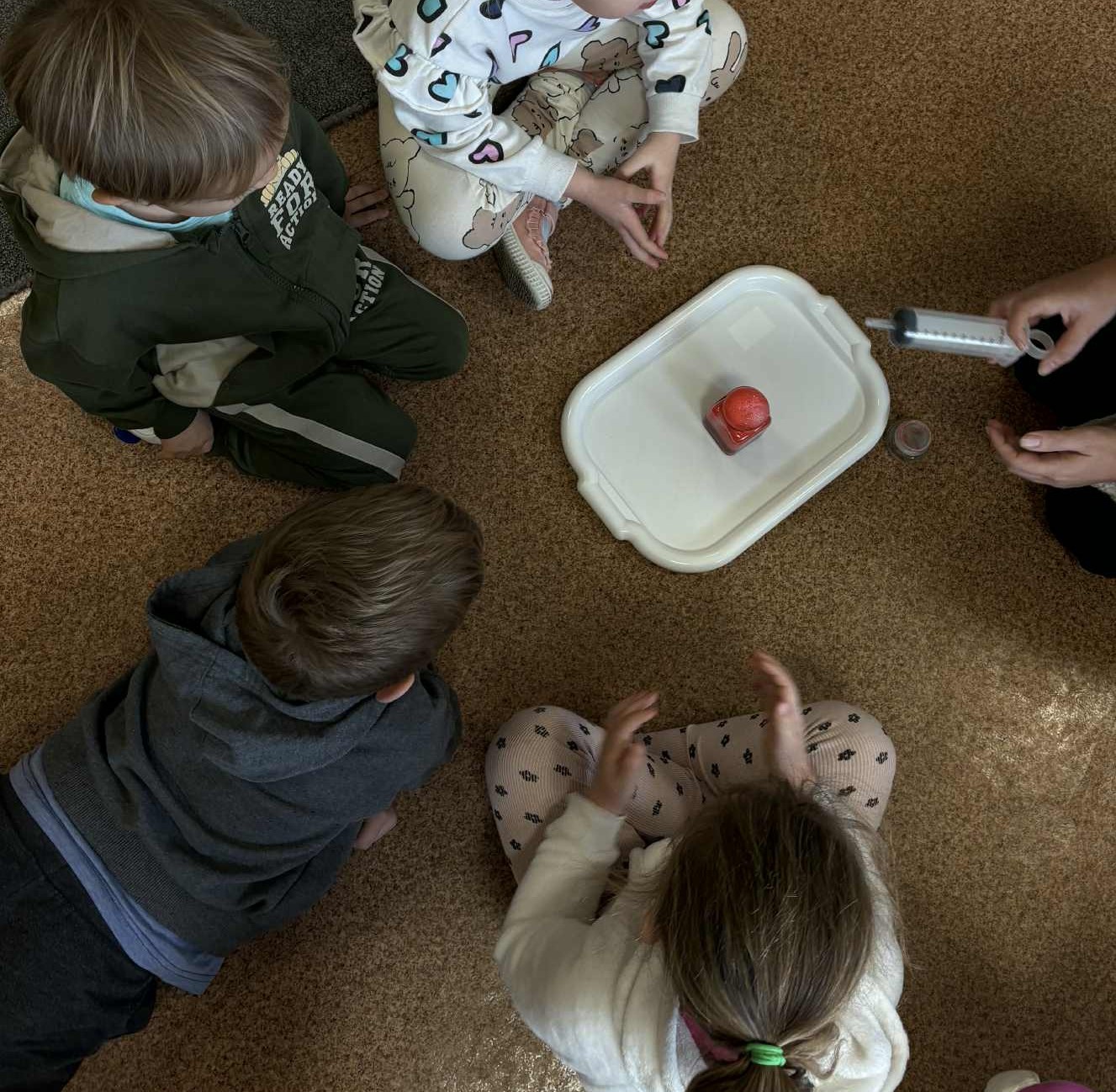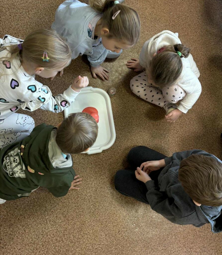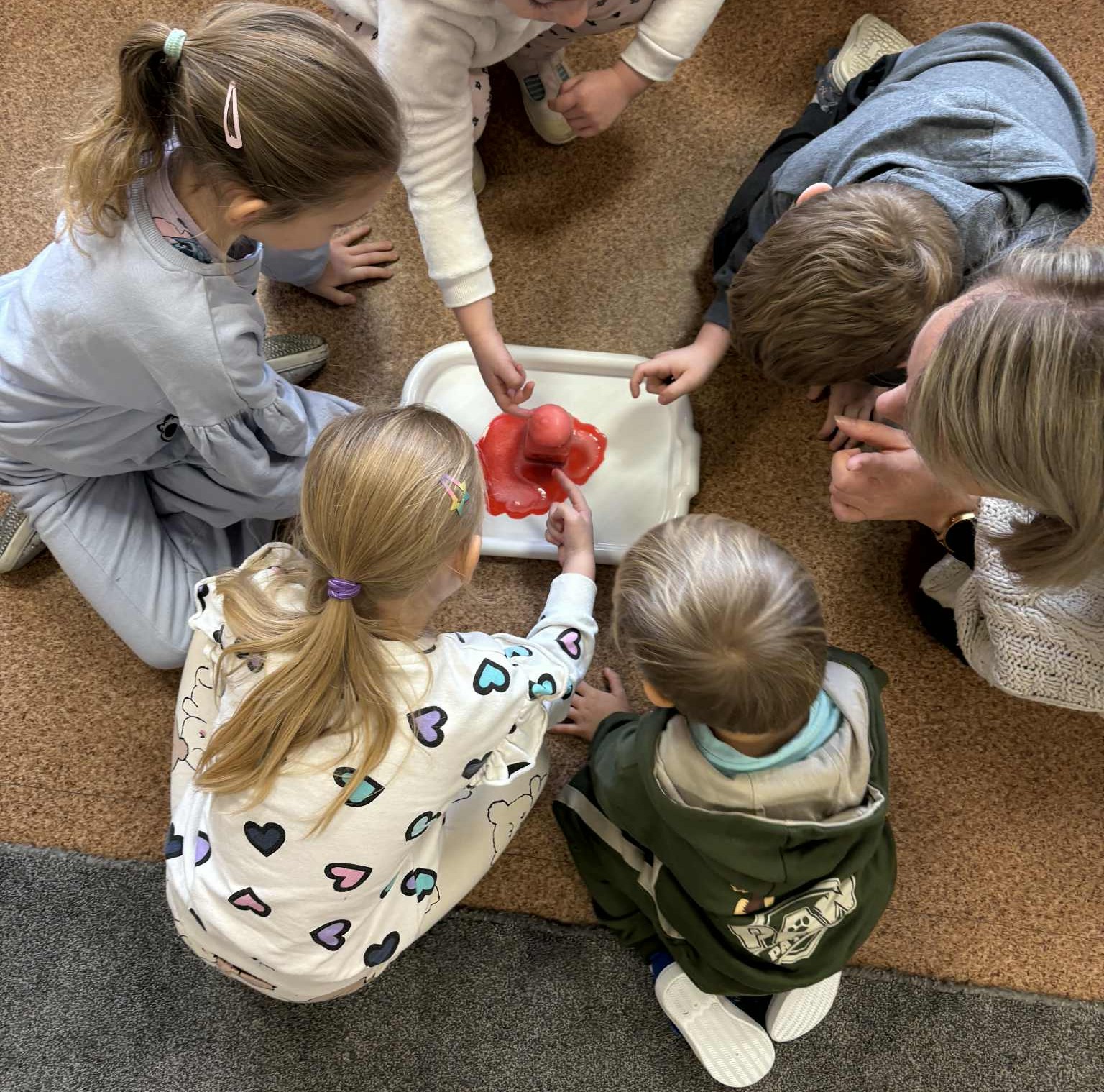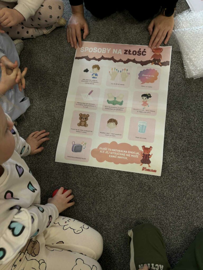 Tym razem dzieci poznały nowego bohatera – Gniewka, który wprowadził je w tematykę radzenia sobie ze złością. Po wysłuchaniu bajki „Gniewek z Wyspy Złości” autorstwa Natalii Łasochy przedszkolaki przeprowadziły doświadczenie „lawa” pod hasłem: „Kiedy złość rośnie w nas”. Eksperyment pozwolił im lepiej zrozumieć, jak narastają emocje i jak można nad nimi pracować. Podczas zajęć nie zabrakło także rozmowy o „Sposobach na złość”, czyli propozycjach bezpiecznego i konstruktywnego wyrażania trudnych emocji.