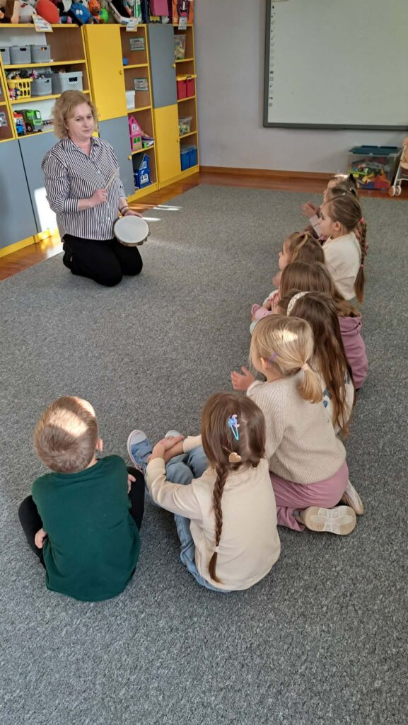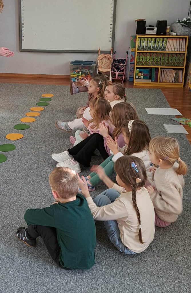 W ramach zajęć dzieci wysłuchały opowieści z serii „Przygody Fenka”, dzięki której dowiedziały się jak ważną rolę w naszym życiu odgrywa. Następnie wzięły udział w przygotowanych ćwiczeniach słuchowych. Była to zabawa w „Głuchy telefon”, „Słuchowe memory”, odgadywanie głosów dzieci oraz zabawa rytmiczna „Klaśnięcie – tupnięcie”. Zadaniem grupy Krasnala Wesołka było również zapamiętywanie i odtwarzanie usłyszanego rytmu. Przygotowane gry służyły rozwijaniu wrażliwości na dźwięki, ich natężenie, tempo czy rytm. Przedszkolaki uczyły się rozpoznawać, identyfikować i różnicować zasłyszane odgłosy.
