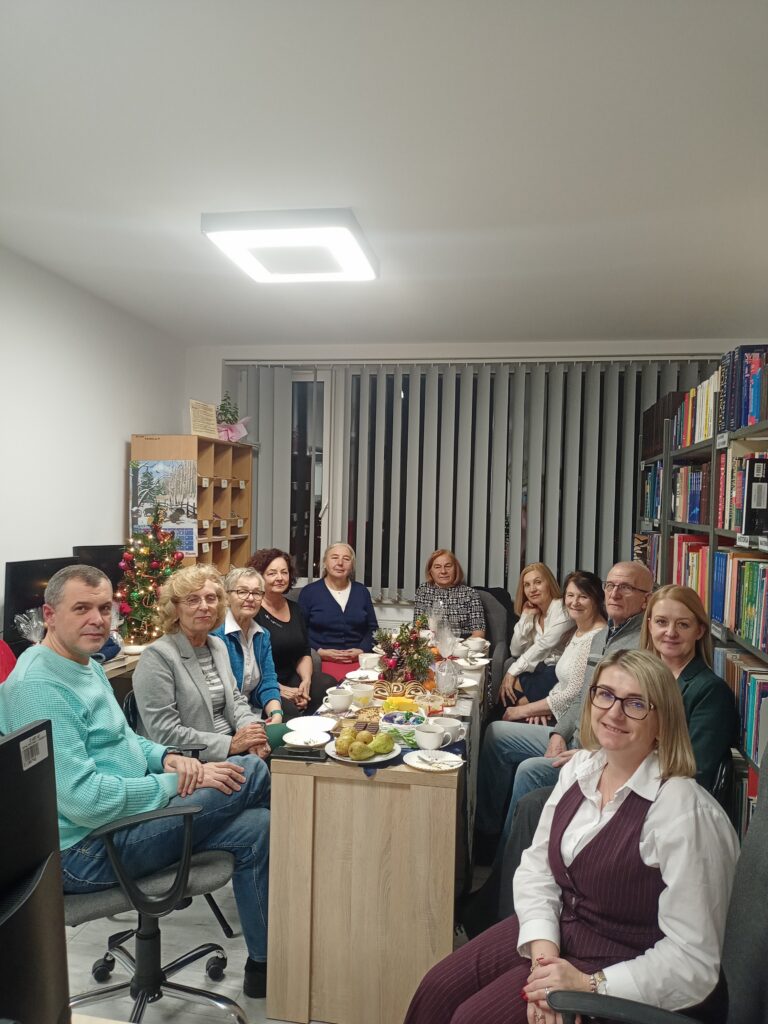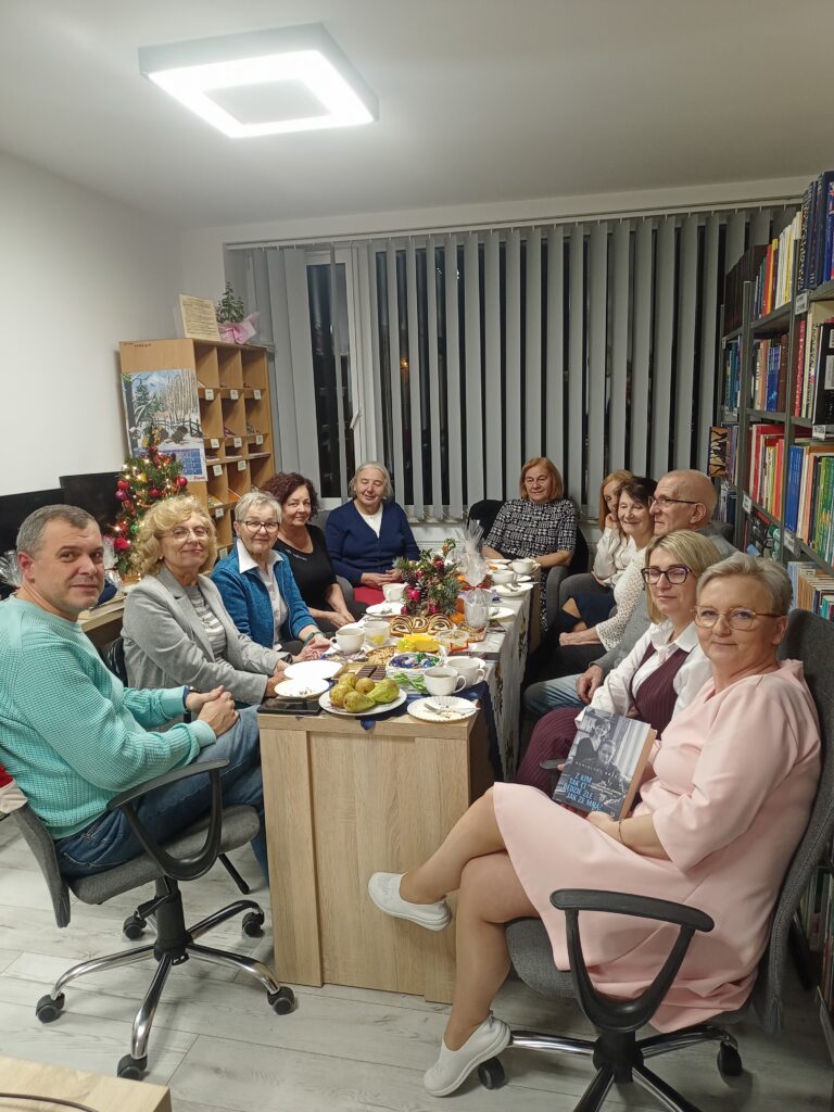 18 grudnia w naszej bibliotece odbyło się wigilijne spotkanie członków Dyskusyjnego Klubu Książki. Pani Dyrektor Anna Mieszkowska złożyła wszystkim gościom życzenia oraz wręczyła drobne upominki. Dzielenie opłatkiem, wspólne rozmowy przy choince oraz degustacja wigilijnych potraw sprawiła, że ten wieczór upłynął w niezwykle ciepłej, świątecznej atmosferze. Nie zapomnieliśmy też o książkach. Tym razem porozmawialiśmy sobie na temat historii Kaliny Jędrusik i Stanisława Dygata. Książka napisana przez Remigiusza Grzelę to opowieść o dwóch silnych osobowościach, uwodzicielach, królach życia, którzy z jednej strony byli dla siebie stworzeni, a z drugiej byli dla siebie przekleństwem.