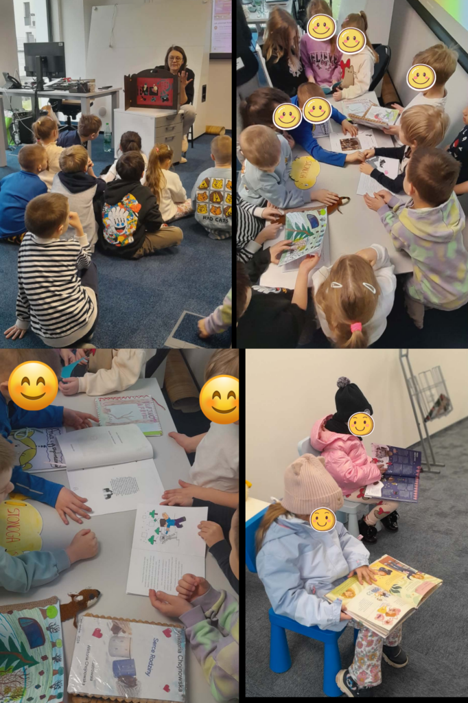 3 marca, w Międzynarodowym Dniu Pisarzy i Pisarek, naszą Bibliotekę odwiedziła gr. 0 b ze Społecznej Szkoły Podstawowej STO w Ciechanowie. Dzieci wysłuchały teatrzyku kamishibai opowiadającego o magii książek, a następnie obejrzały krótki filmik o pracy pisarza i o tym, jak powstaje książka. Mogły zobaczyć także książki wykonane własnoręcznie przez dzieci na konkurs „Wydajemy Własną Książkę”. Na koniec bawiły się na magicznym dywanie, ćwicząc umiejętności bardzo przydatne podczas czytania książek: koncentrację, spostrzegawczość, cierpliwość. Zajęcia poprowadziła p. Monika Biedrzycka-Gładka, koordynator ds. instruktażu dla bibliotekarzy.