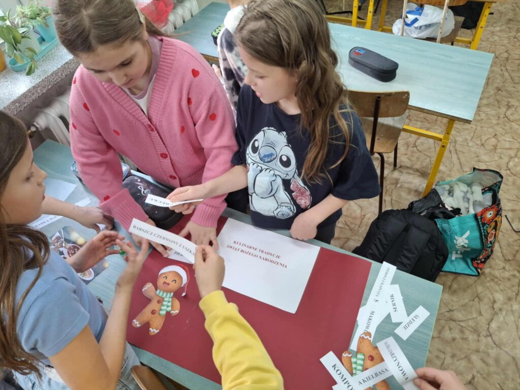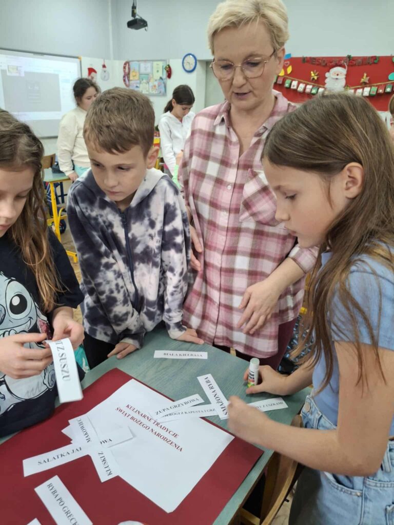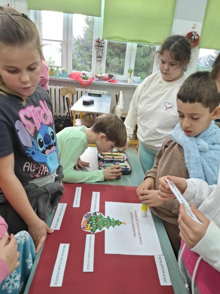 „Magia Świąt Bożego Narodzenia” to temat spotkania z klasą III w Szkole Podstawowej nr 7 z Oddziałami Integracyjnymi w Ciechanowie. 12 grudnia zajęcia czytelniczo-edukacyjne z wykorzystaniem narzędzi TIK przeprowadziła w tej klasie Adriana Karwowska z Wydziału Udostępniania Zbiorów. Dzieci wysłuchały opowiadania „Księga świątecznych radości”. Uczniowie obejrzeli film edukacyjny „Karolek i Święta Bożego Narodzenia” oraz zagrali w świąteczne koło fortuny na platformie Wordwall. . Zabawa dydaktyczna „Pomocnicy Świętego Mikołaja” zwieńczyła to niezwykle ciekawe spotkanie. Uczniowie podzieleni na trzy grupy mieli za zadanie stworzenie plakatu na temat „Kulinarne tradycje świąteczne”, „Tradycje Świąt Bożego Narodzenia” „Świąteczne skojarzenia”.