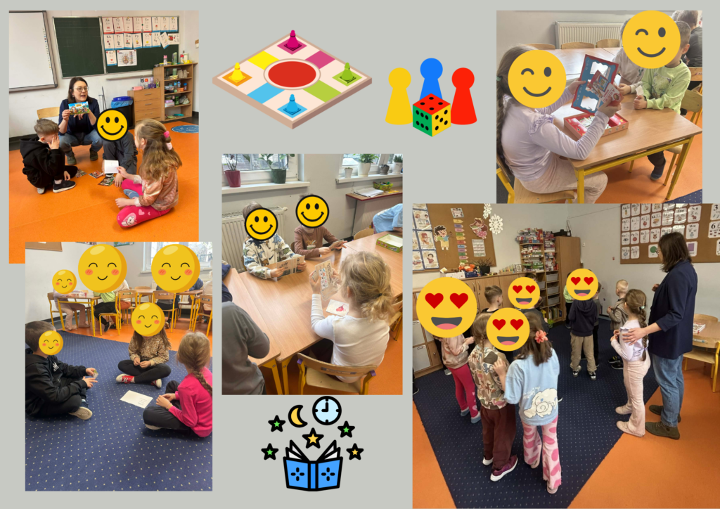 Dzieci z gr. „0″ a miały możliwość poznać różnego typu gry, w których wykorzystuje się snucie opowieści lub zabawę słowem.