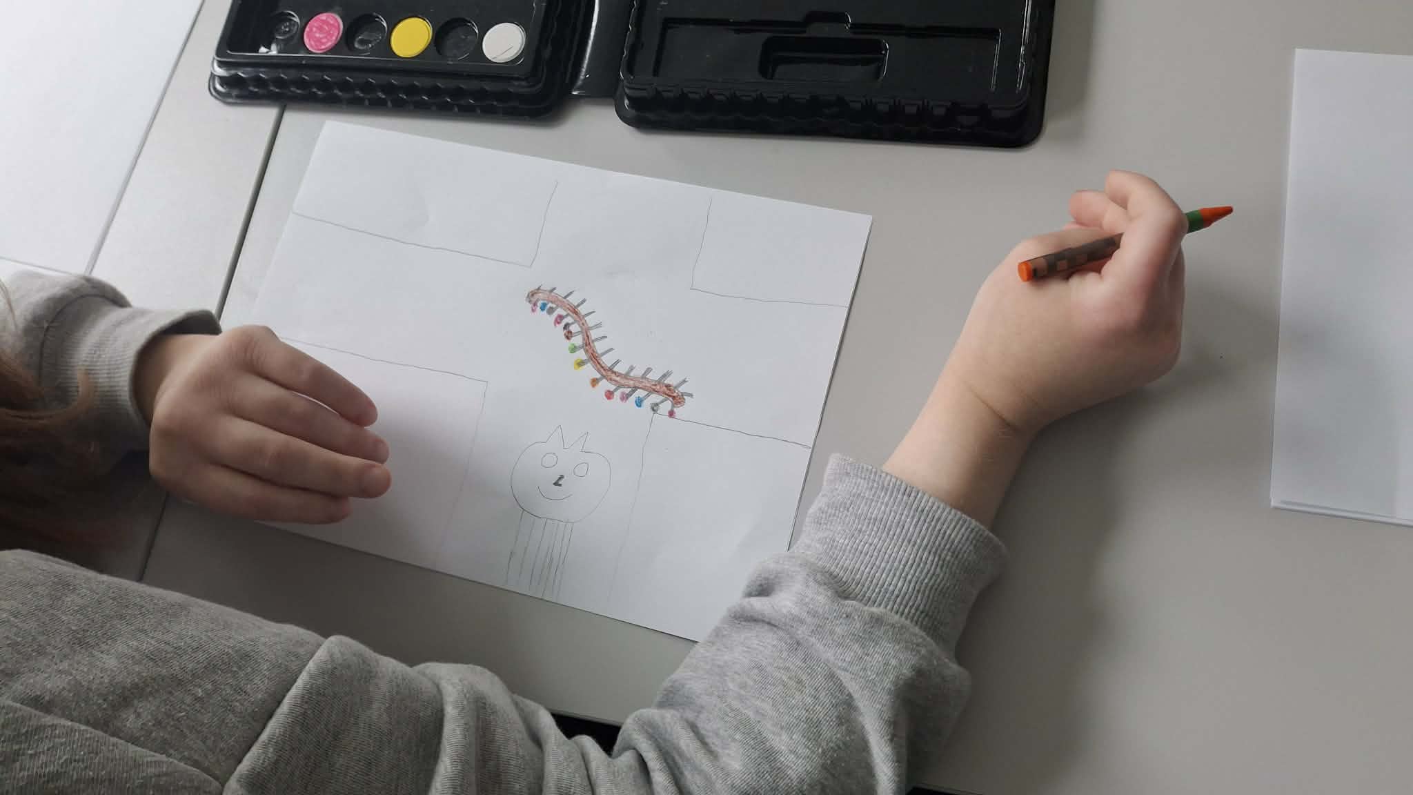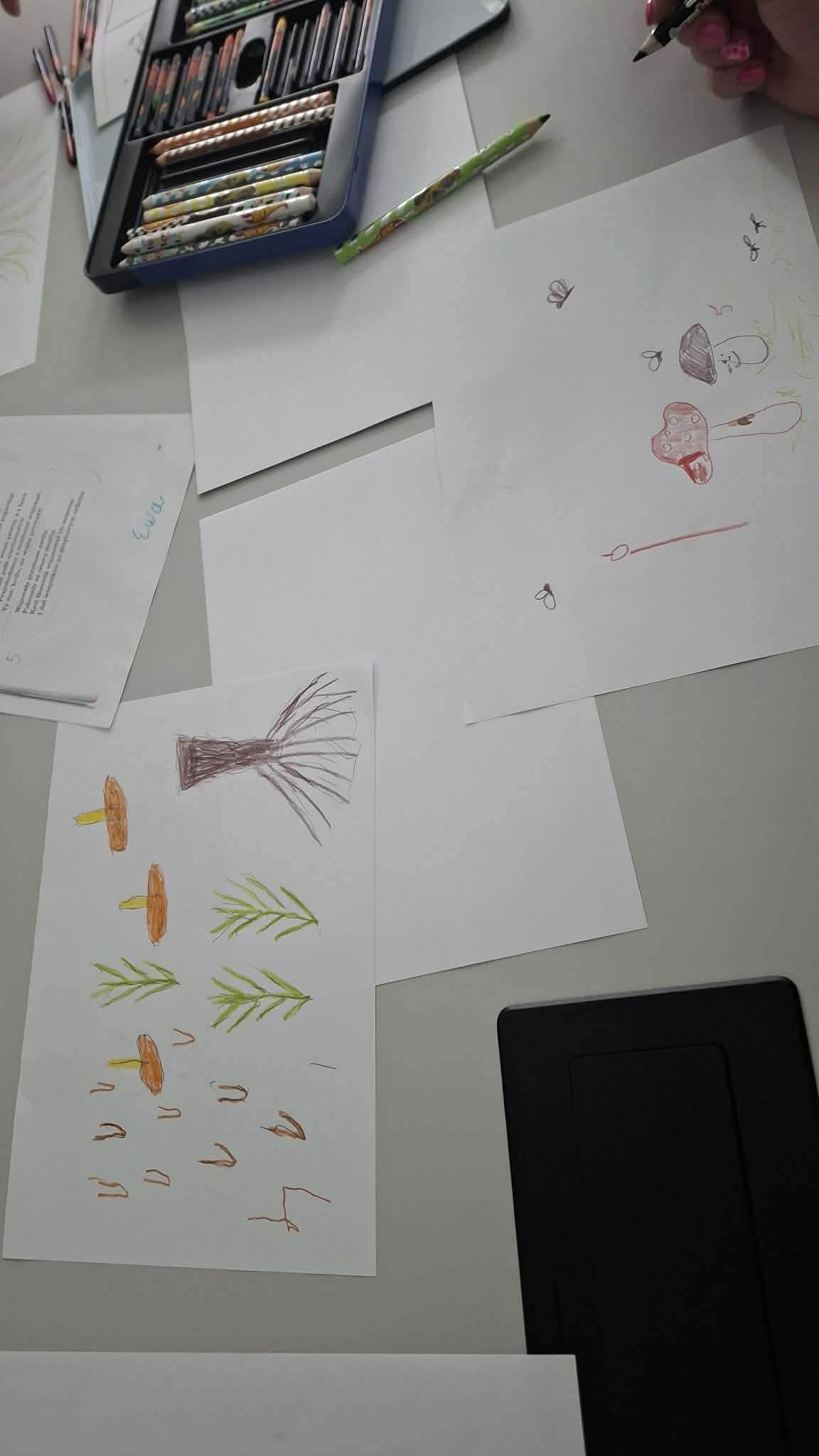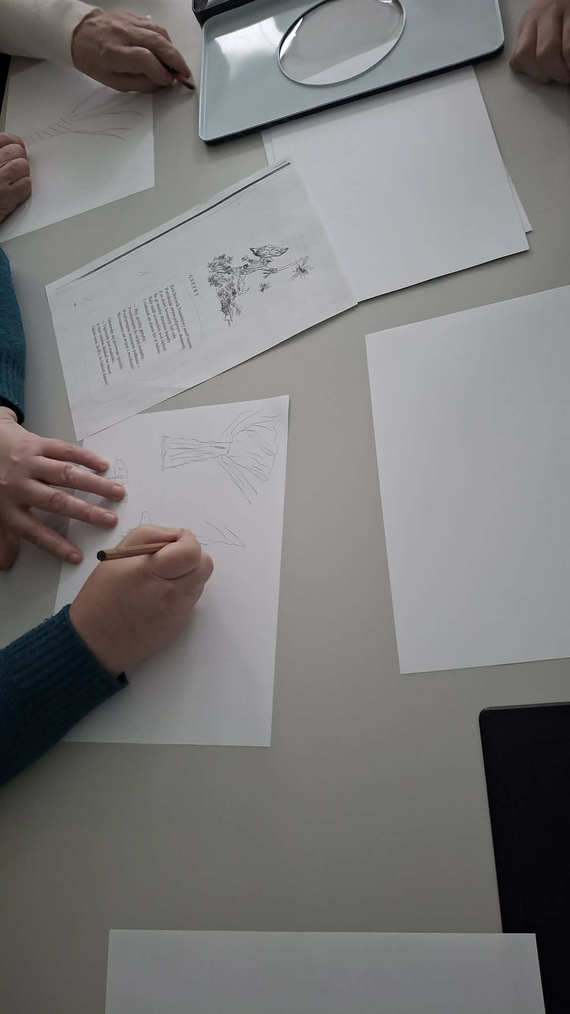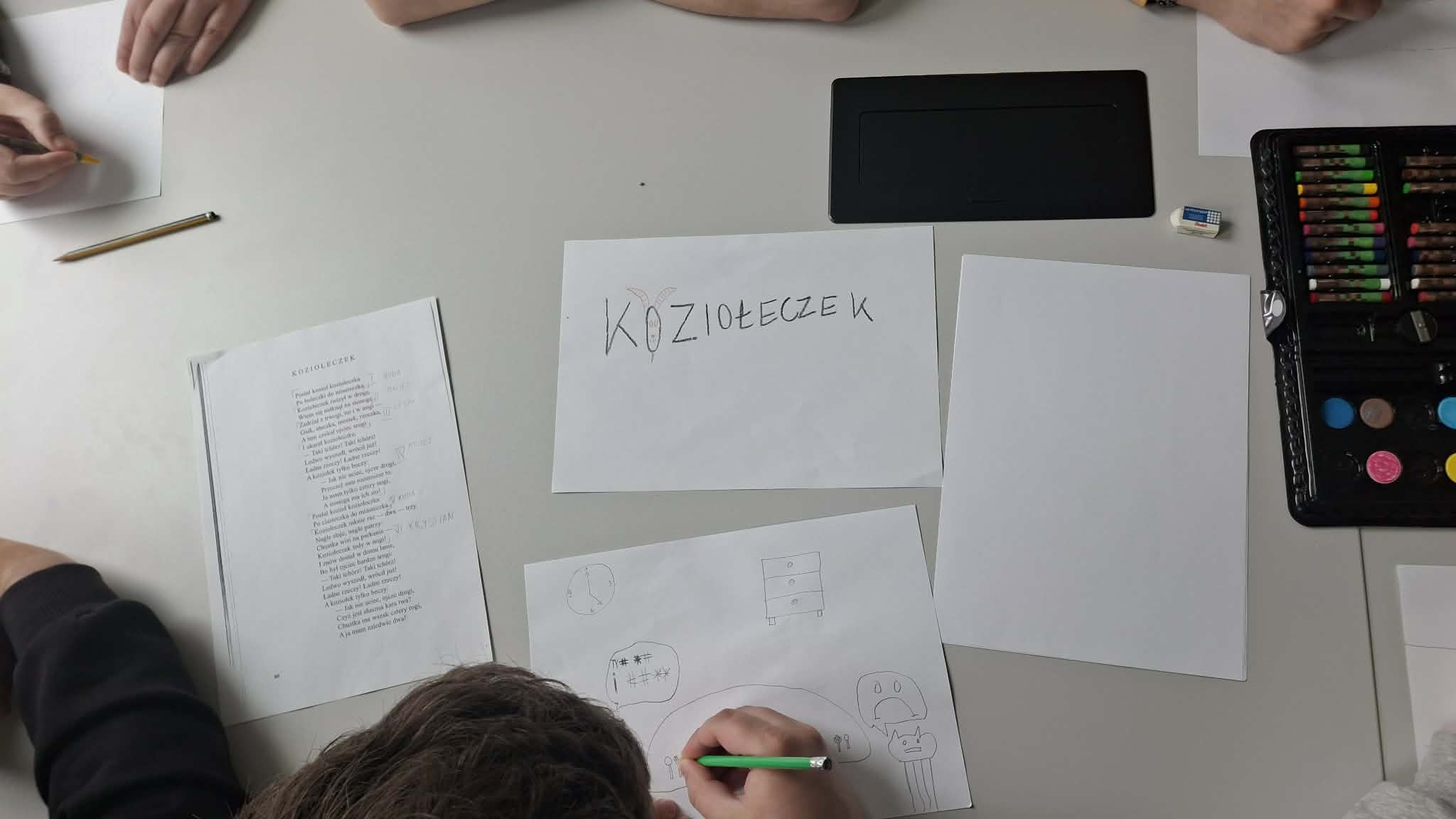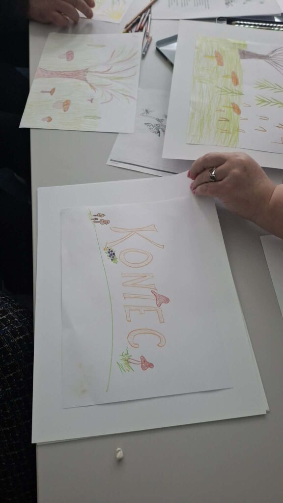 Po części literackiej przyszedł czas na twórcze działania. Słuchacze samodzielnie wykonali ilustracje do wybranych wierszy Jana Brzechwy, które następnie zaprezentowali w „magicznej skrzynce”, wcielając się w rolę narratorów i artystów.