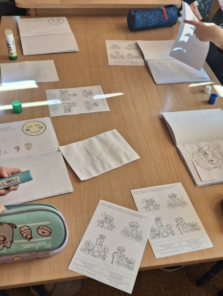 Po wysłuchaniu opowiadania rozmawialiśmy o tym, czym jest wstyd i trema oraz w jakich sytuacjach mogą się pojawić. Wspólnie zastanawialiśmy się, jak można sobie z nimi radzić i co pomaga poczuć się pewniej.