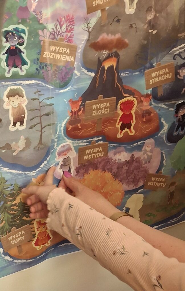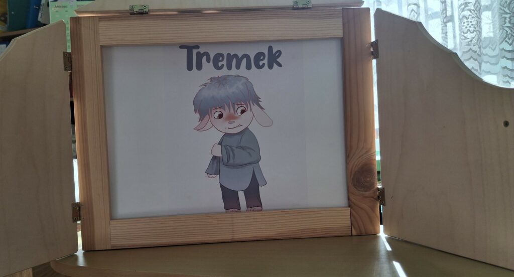 Podczas zajęć dzieci wysłuchały bajki Moniki Majewskiej pt. „Tremek z Wyspy Wstydu”, zaprezentowanej w formie teatrzyku kamishibai. Taka forma opowieści wzbudziła duże zainteresowanie przedszkolaków i pozwoliła im jeszcze lepiej wczuć się w emocje bohaterów historii.