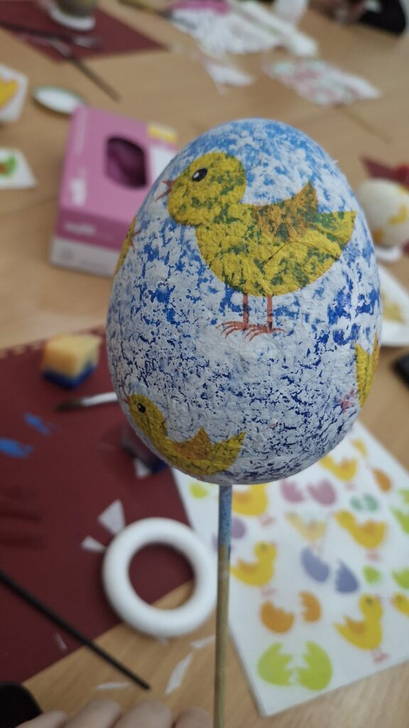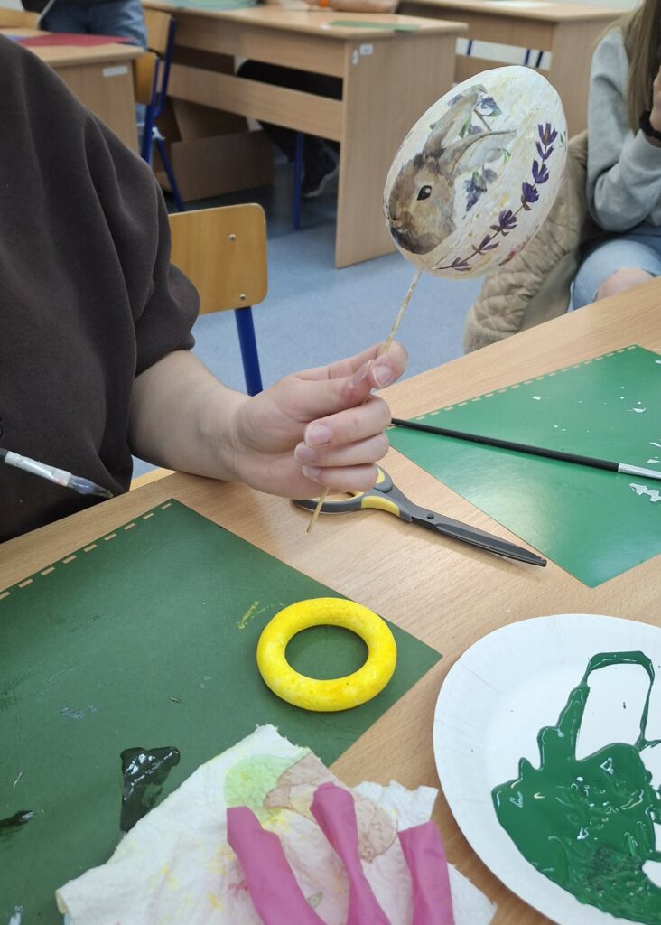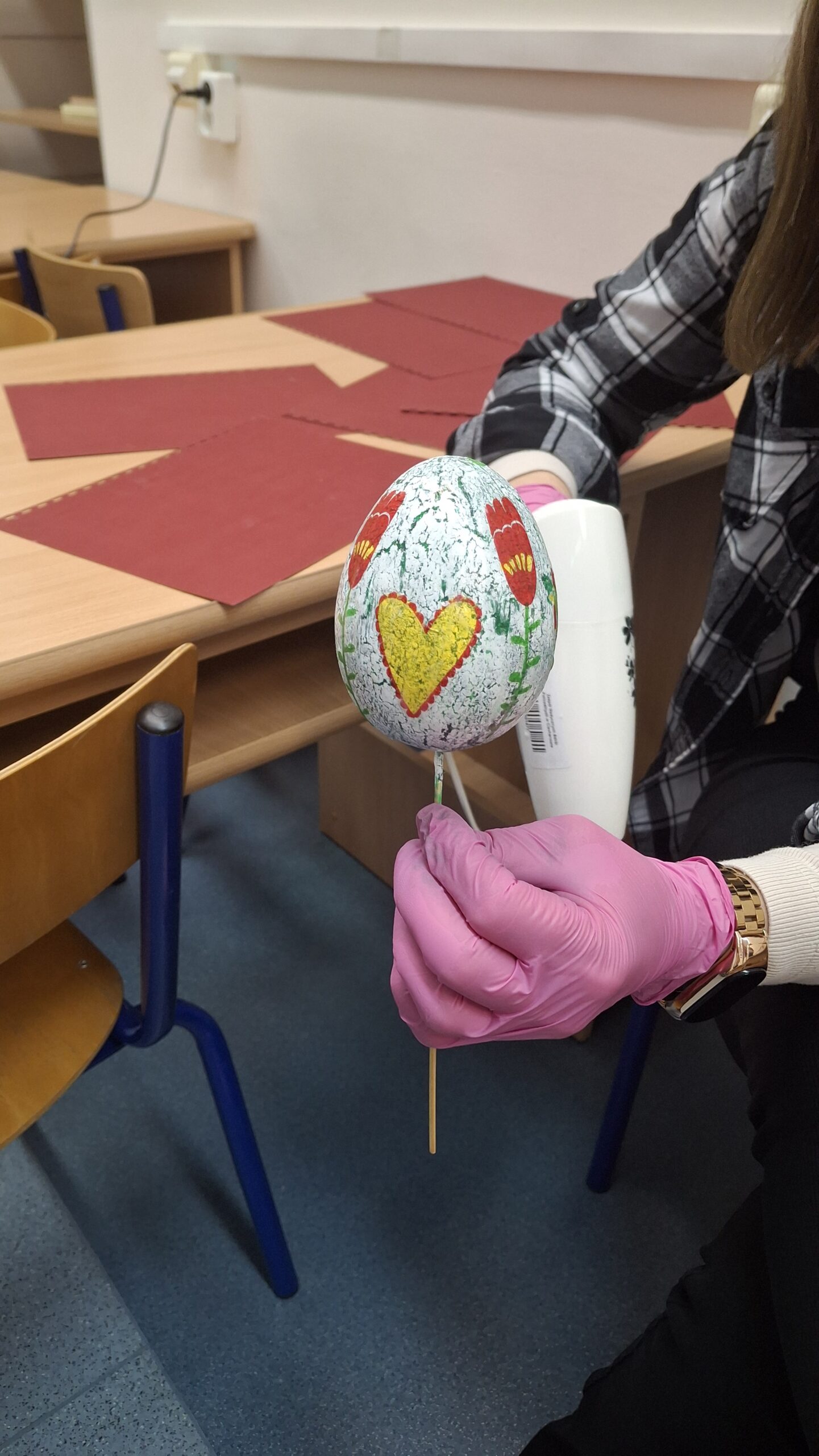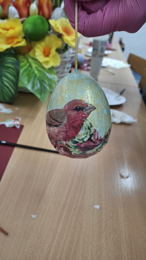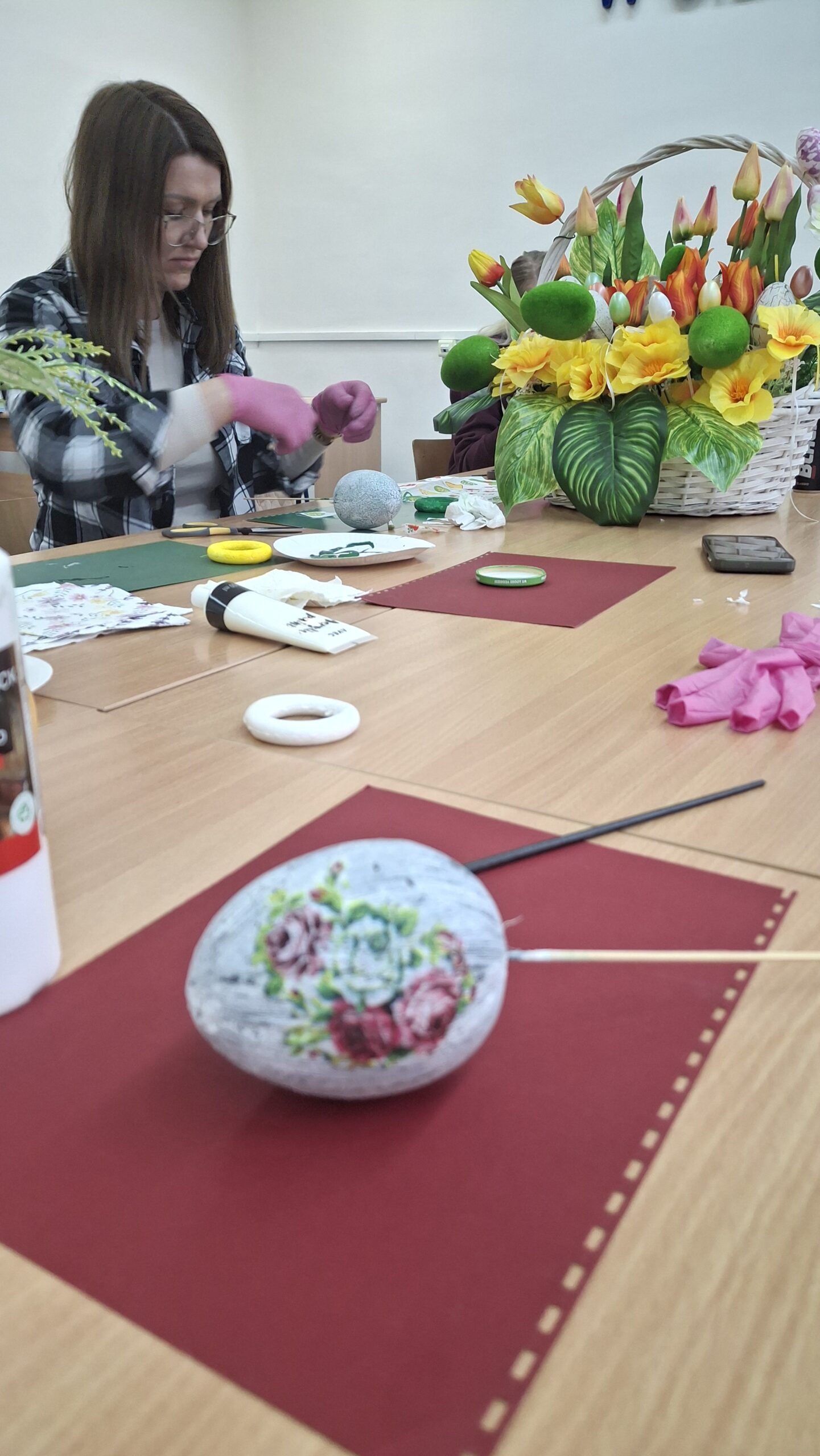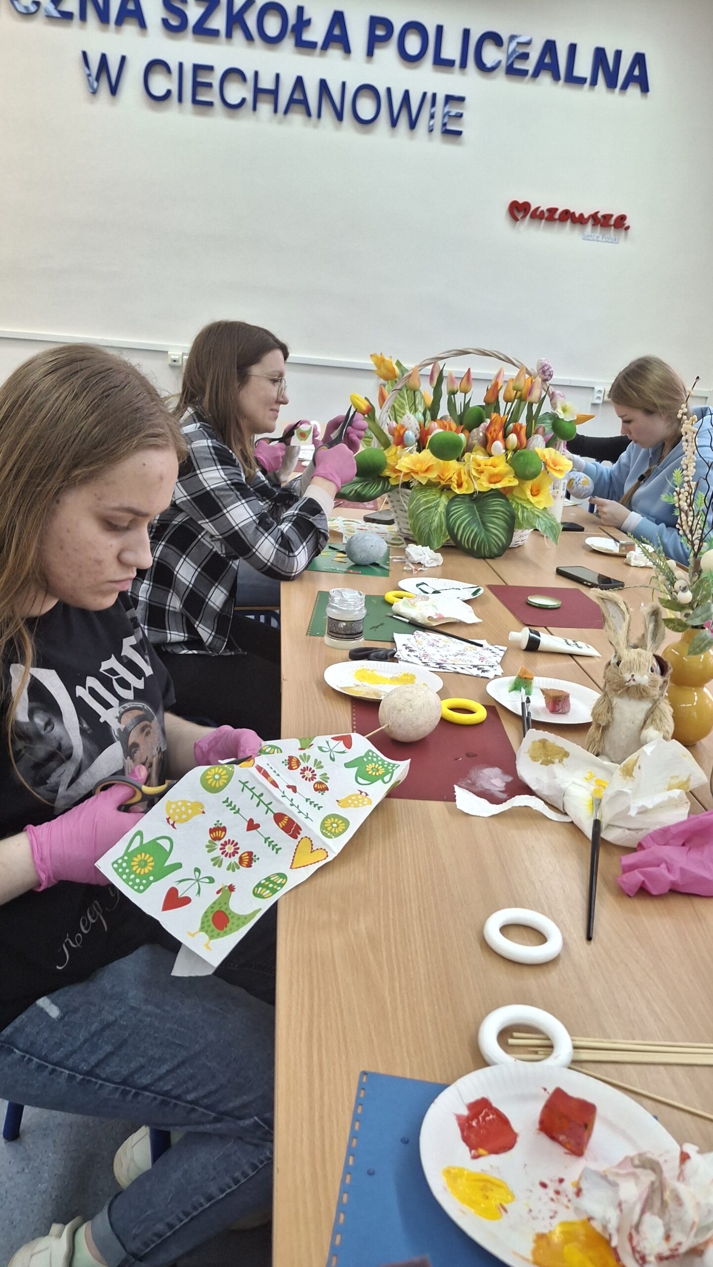 Zajęcia poprowadziła Małgorzata Komor z Biblioteki Pedagogicznej w Ciechanowie – Wydział Udostępniania Zbiorów. Podczas spotkania słuchacze mieli okazję własnoręcznie wykonać wielkanocne jajka metodą decoupage, rozwijając przy tym swoje zdolności manualne i kreatywność.