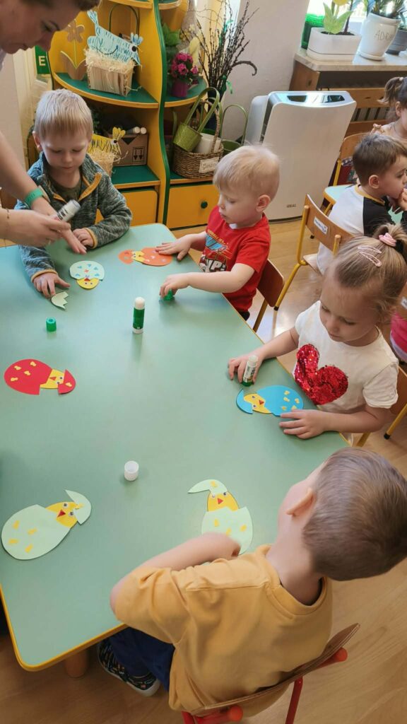 z Wydziału Udostępniania Zbiorów BP. Spotkanie rozpoczęło się od zaprezentowania dzieciom za pomocą teatrzyku Kamishibai bajki „Wielkanocny zajączek”. Porozmawialiśmy również o tym jak w naszych domach obchodzimy Wielkanoc. Maluchy zaangażowały się również w zabawę plastyczną, której efektem były kreatywne pisanki. Ostatnia aktywność jaką zaproponowaliśmy przedszkolakom „dokończ szlaczki” okazała się nie tylko świetną zabawą ale też dzieci miały okazję poćwiczyć motorykę małą. Przedświąteczne spotkanie z grupą „Żabki” upłynęło pod znakiem wspólnej edukacji i zabawy w niezwykle ciepłej atmosferze.
