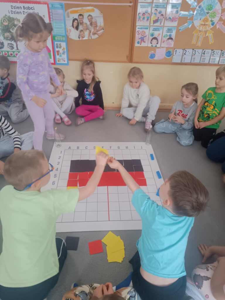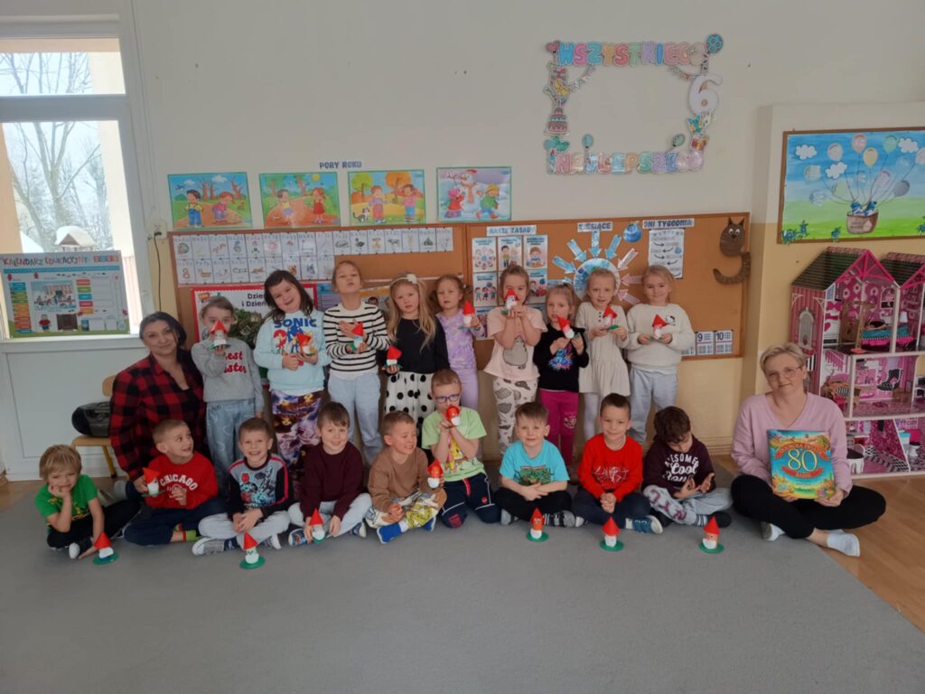 W ramach innowacji pedagogicznej pod hasłem „Z baśnią dookoła świata” odbyły się zajęcia czytelniczo- plastyczne z elementami kodowania. Dzieci poznały opowieść z Niemiec „Prezent od krasnoludka”. Ciekawostki dotyczące tego kraju przybliżyły dzieciom kulturę tej części Europy. Zakodowaliśmy również wspólnie flagę Niemiec. Na koniec przedszkolaki z materiałów wtórnych wykonały tytułowego krasnoludka.