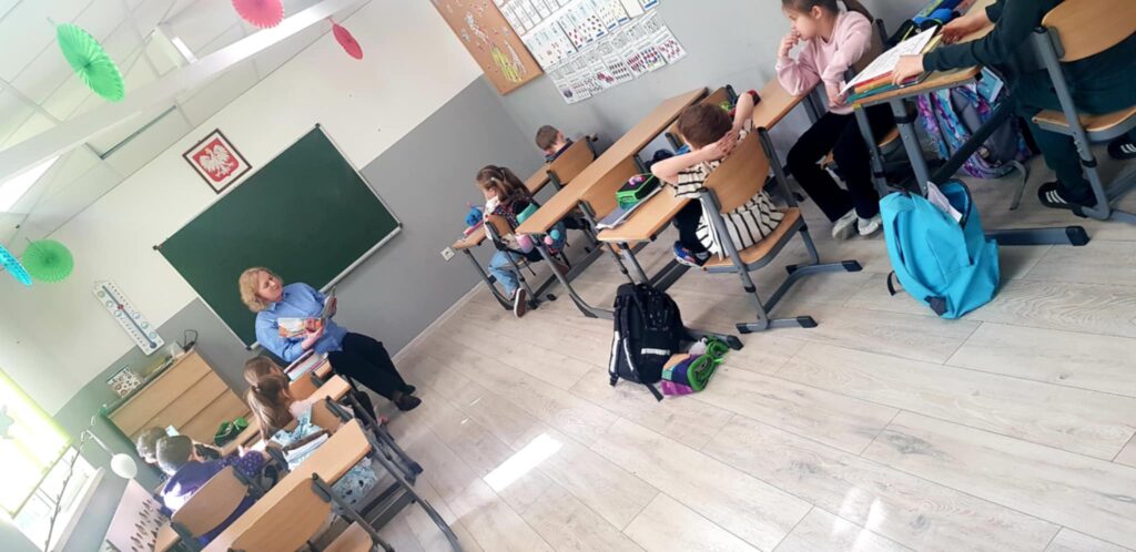 18 marca 2026 r. spotkaliśmy się z klasą 1B ze Szkoły Podstawowej TWP w Ciechanowie, aby zrealizować kolejny moduł innowacji pedagogicznej „Z książką w świat wartości”.
